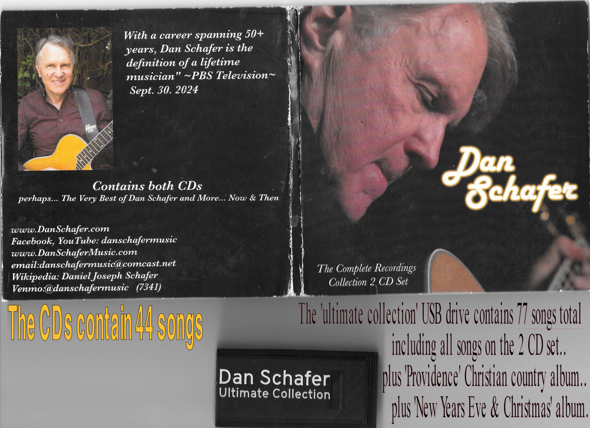 "Ultimate Collection: USB Drive 77 songs including BOTH CDs plus 'Christmas' & 'Gospel' albums. $35.00 each